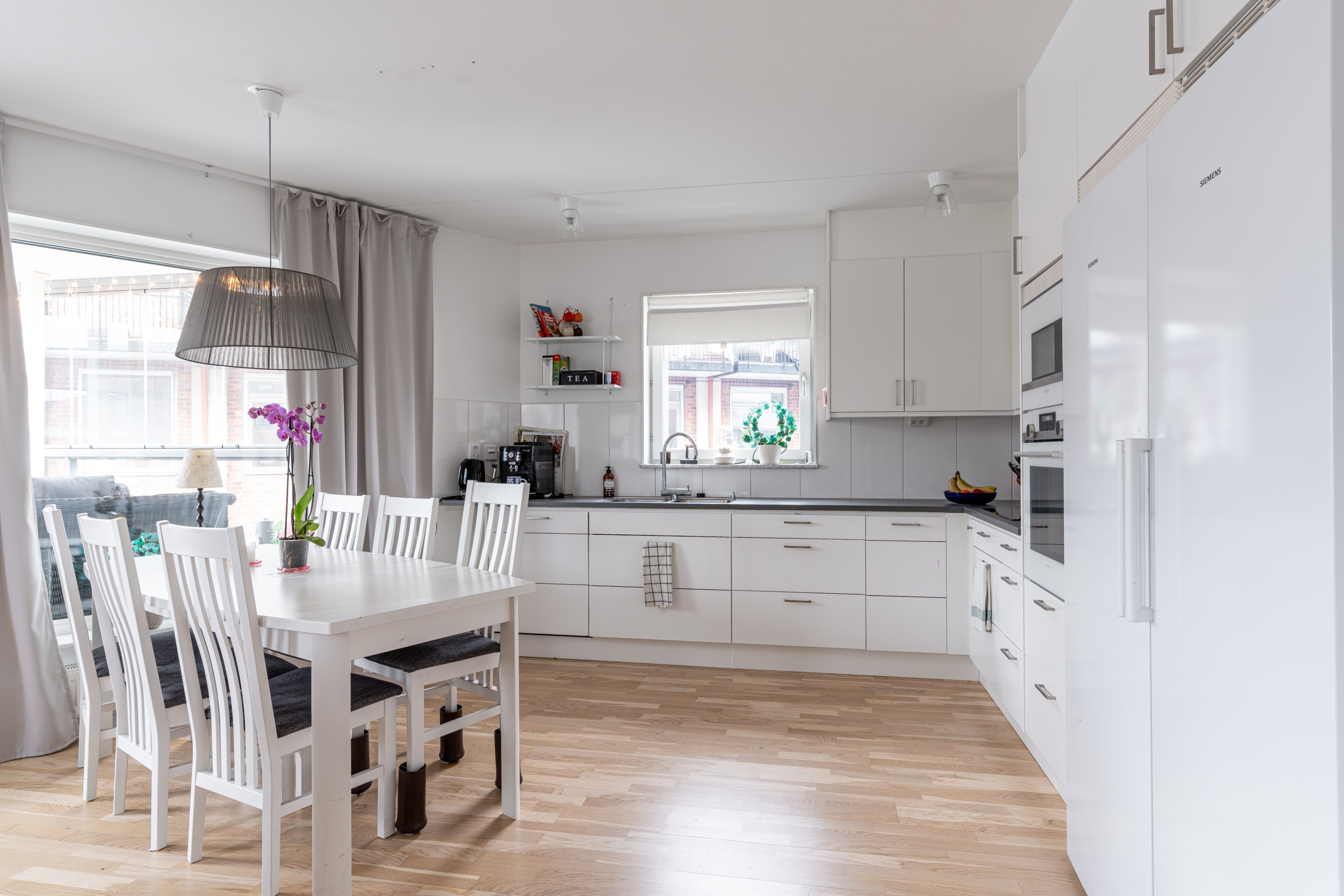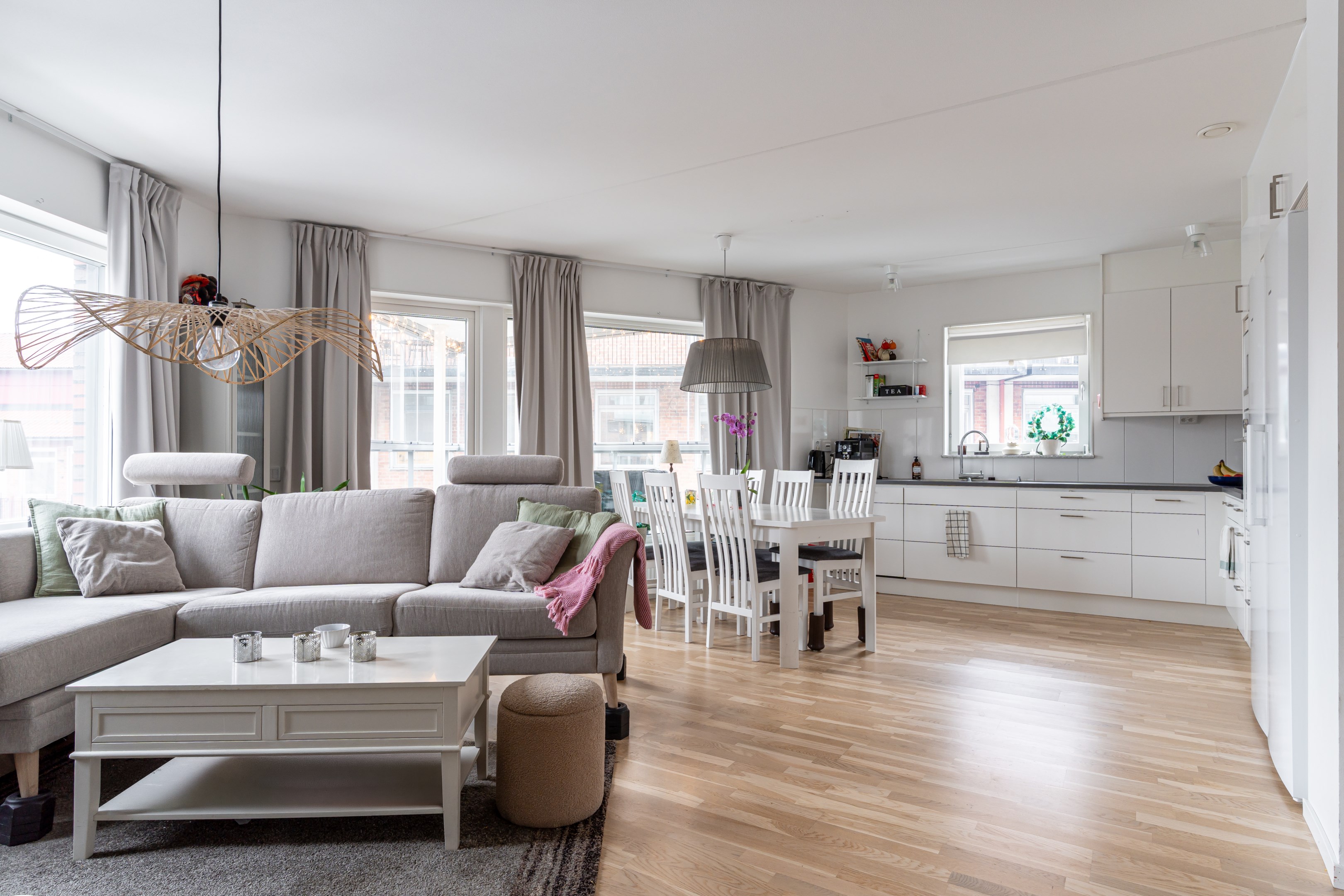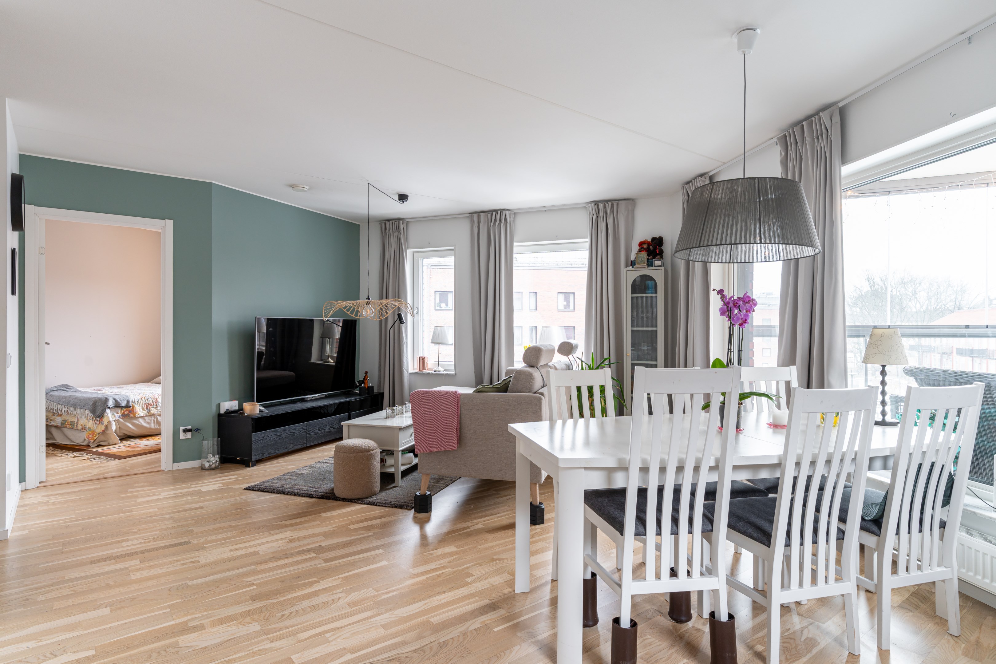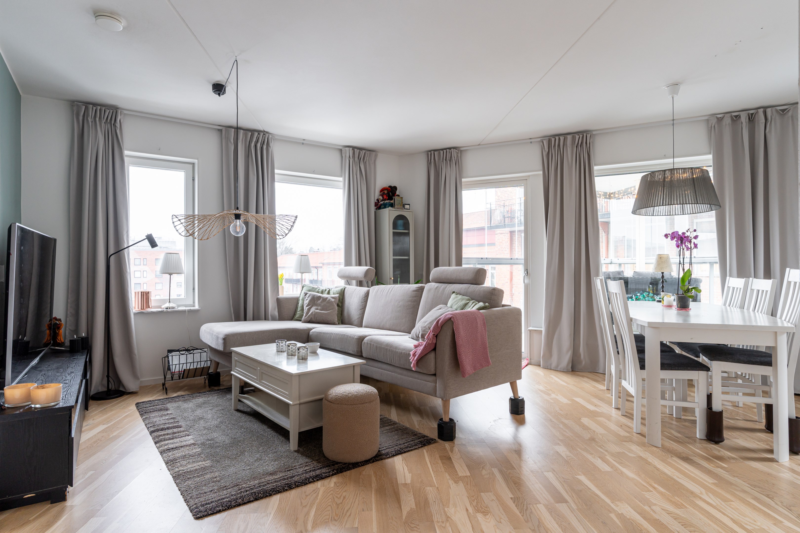 Välkommen till denna trivsamma och välplanerade trea med genomtänkt planlösning som erbjuder både rymd och funktion. Här bor du bekvämt på våning 3 med hiss i huset – ett hem som kombinerar ljus, komfort och låg boendekostnad. Lägenheten präglas av generöst ljusinsläpp från stora fönsterpartier och en öppen, social yta där kök, vardagsrum och den inglasade balkongen samspelar i en tilltalande helhet. Den inglasade balkongen, som går ut i en trekant, ger bostaden en unik karaktär och fungerar som ett extra rum stora delar av året – perfekt för både avkoppling och umgänge. Köket är modernt och stilrent med gott om arbetsytor och förvaring. Två rofyllda sovrum ger flexibilitet för familj, barnrum, gästrum eller hemmakontor. Badrummet är fräscht och funktionellt utrustat. Goda förvaringsmöjligheter finns i lägenheten samt tillhörande förråd. Bostaden har genomgående parkettgolv och ljusa väggar som skapar en harmonisk och inbjudande atmosfär. Säkerhetsdörr bidrar till extra trygghet. I månadsavgiften ingår grundutbud av TV samt snabbt fiberbredband om 1000/1000 Mbit, vilket ger både stabil uppkoppling och låga löpande kostnader. Läget på attraktiva Gideonsberg är mycket bra med närhet till grönområden, service och goda kommunikationer. Här bor du med bekvämt avstånd till universitet, city och handelsområden. I närområdet finns matbutiker, restauranger, apotek och träningsmöjligheter. För dig som pendlar är cykel- och bussförbindelser utmärkta. I föreningen finns gemensam tvättstuga, övernattningsrum och föreningslokal. Det finns dessutom ledig garageplats inom föreningen för den som önskar – en stor fördel i området. Ett perfekt hem för dig som söker en rymlig, bekväm och välbelägen bostad med det lilla extra. Varmt välkomna på visning, anmälan sker på mäklarens hemsida.