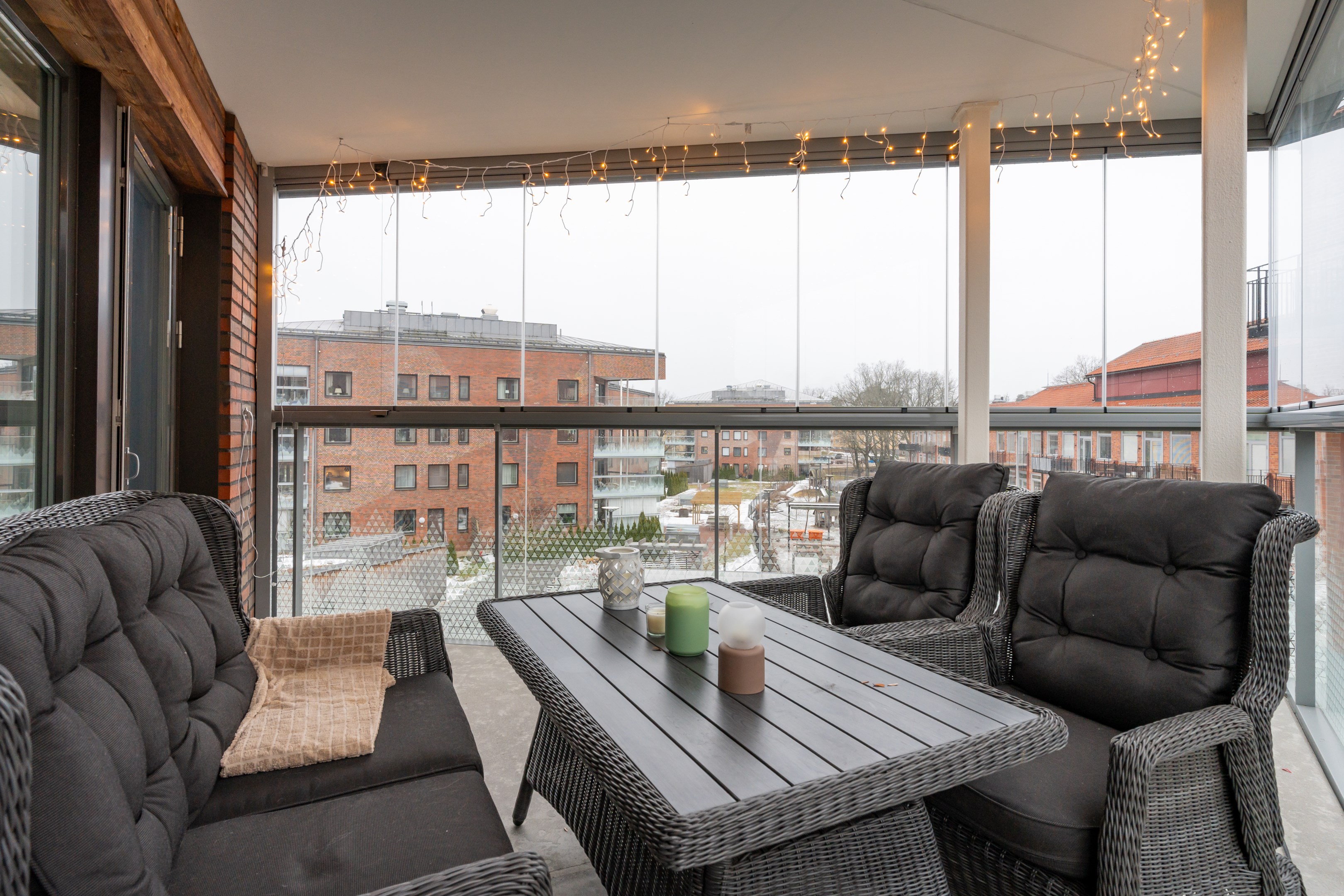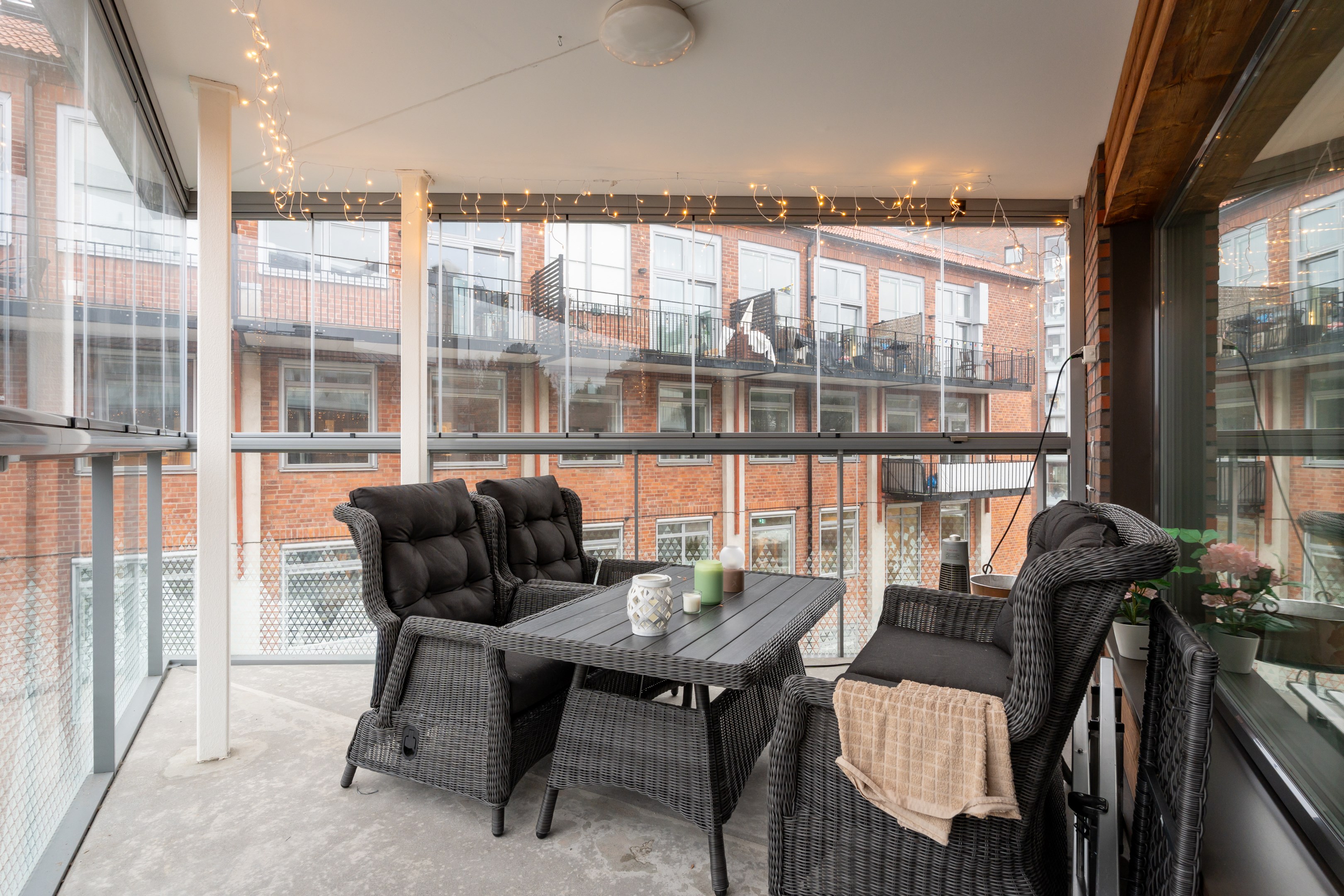 Inglasad balkong.